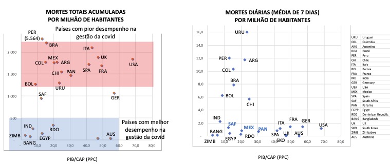 Uma correlação muito forte existe entre os países com pior desempenho e a renda per capita. Quanto mais alta a renda per capita, pior o desempenho na gestão da covid, evidenciado pela mortalidade por milhão de habitantes. As agências de saúde dos países desenvolvidos (NIH, FDA, OMS, EMA) e farmacêuticas (Merck), com conflito de interesse no uso de vacinas e medicamentos caros, vivem afirmando que Ivermectina não tem eficácia no tratamento da covid, sem nenhuma prova, sem nenhum estudo científico sólido, desde agosto 2020. Quanto maior a riqueza, mais o interesse próprio e o materialismo afetam as decisões coletivas.